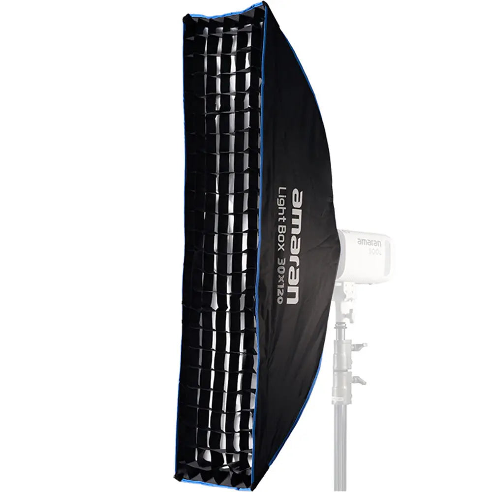 The Amaran Light Box 30x120 is a quick and efficient lighting solution featuring a one-snap mechanism for instant assembly, making it ideal for portrait and product photography. Its compact, flat-pack design saves space and is easy to store, perfectly suited for photographers and content creators who frequently change locations or setups. Compatible with Amaran COB lights and other Bowens-mount fixtures up to 600 watts, this softbox delivers a large, evenly diffused lighting surface while providing added flexibility with an included grid for enhanced contrast and control.
