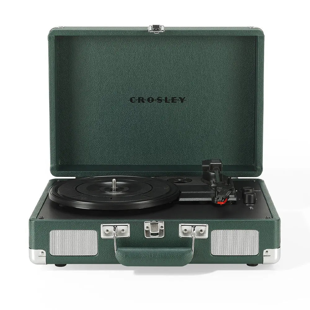 Crosley Cruiser Bluetooth Portable Turntable - Dark Emerald - Some say you can’t improve on a classic, but we are here to prove them wrong with the Crosley Cruiser Bluetooth Portable Turntable. Features Bluetooth output functionality, so you can listen to your favourite records on the speaker system of your choice! The upgraded Cruiser design retains its charming portable suitcase shell in a rainbow of colours, three speeds and pitch control for all your listening needs, a Bluetooth receiver and built-in speakers so you can listen on the go — but with the added option to pair it with your favourite external speakers via Bluetooth output.