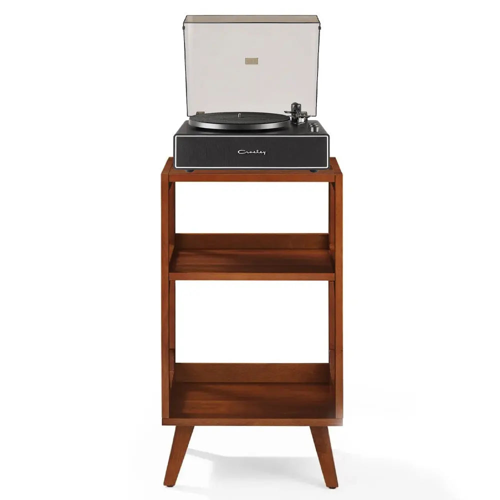 Crosley Stave 2-Speed Bluetooth Record Player Turntable with Built-in Speakers + Crosley Asheville Stand Bundle - Black- The Stave Record Player delivers powerful, balanced sound that does your vinyl collection justice. With 60W peak power (30W RMS, 15W RMS x 2), the built-in speakers provide rich, room-filling audio, while adjustable bass and treble controls let you fine-tune every track to suit your space and style.
