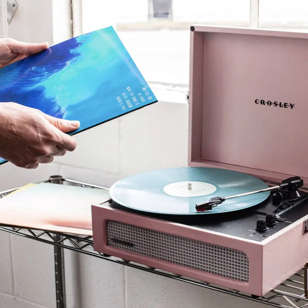 Crosley Voyager Bluetooth Portable Turntable + Crosley Asheville Stand Bundle - Amethyst - Vintage Style. Modern Sound. The Voyager Record Player brings together classic vinyl vibes and modern technology in one portable design. Whether you're rediscovering your record collection or spinning vinyl for the first time, this stylish suitcase turntable delivers rich sound and effortless connectivity.Designed to play 33 1/3, 45 and 78 RPM records, the Voyager features built-in stereo speakers for instant listening. Want more power? Connect wirelessly to Bluetooth speakers or stream music from your phone directly through the turntable.Fine-tune your sound with adjustable pitch control and use the cueing lever for precise needle placement. Compact and portable, itÕs ready to go wherever the music takes you.