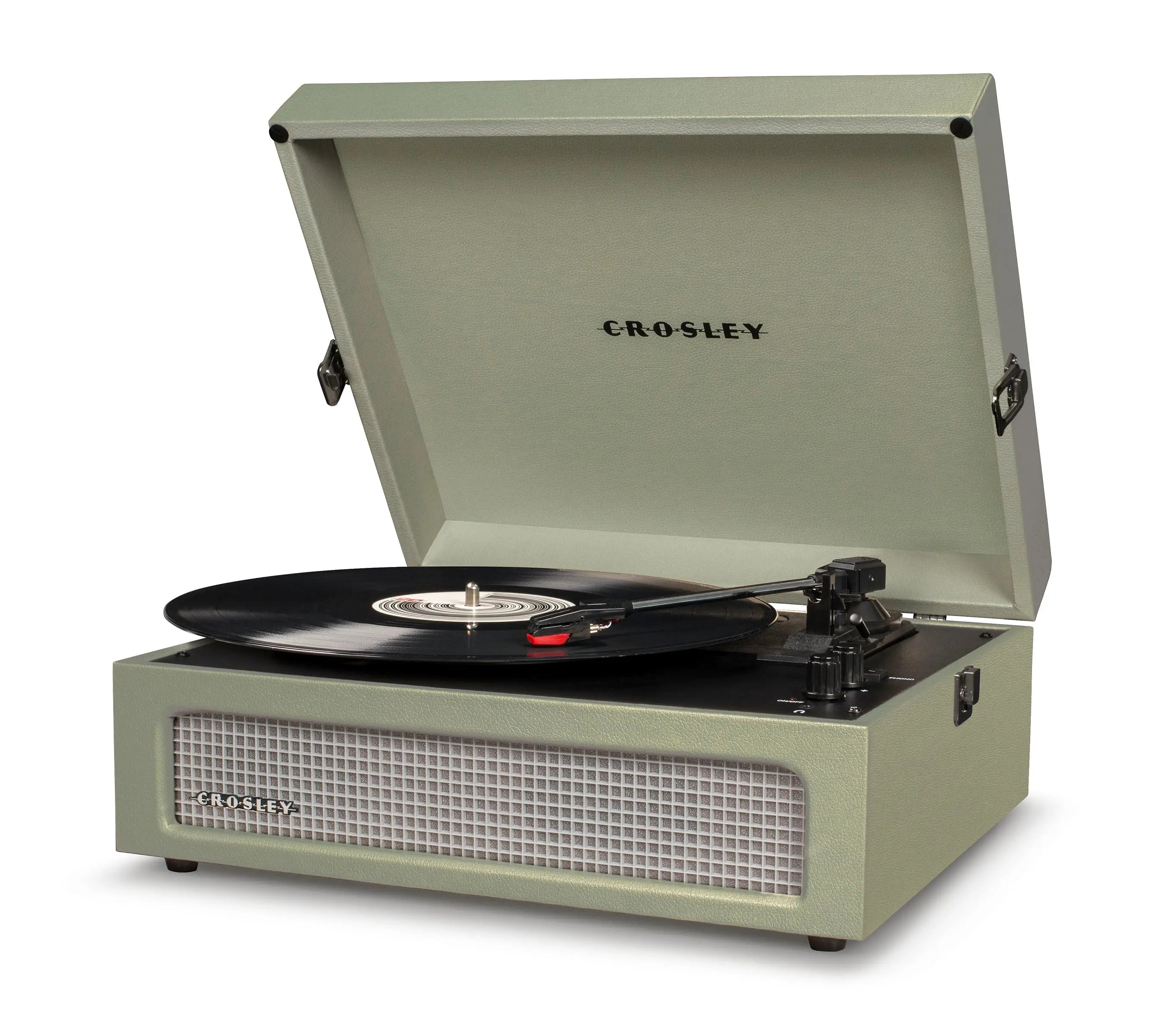 The Crosley Voyager Bluetooth Portable Turntable in Sage, bundled with the Crosley Record Storage Display Stand, is the perfect way to enjoy analog music in a modern world. With a vintage-inspired design, this lightweight turntable can spin records at 33 1/3, 45, or 78 RPM, or connect wirelessly through Bluetooth to play digital music. Use the pitch control to adjust the speed and connect to your existing sound system or bigger speakers through RCA outputs for an enhanced sound experience. Need a place to display your records? The minimalist Record Storage and Display Stand, made of solid wood, holds 20-30 7” or 12” records and requires minimal assembly. This stand is the perfect way to browse and display your record collection with ease.