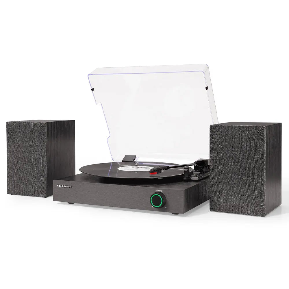 Crosley Zane 3-Speed Bluetooth Vinyl Record Player Turntable, with Matching Stereo Speakers - Black - CROSLEY CR7503A-BK ZANE 3-Speed Bluetooth Record Player with Speakers Black