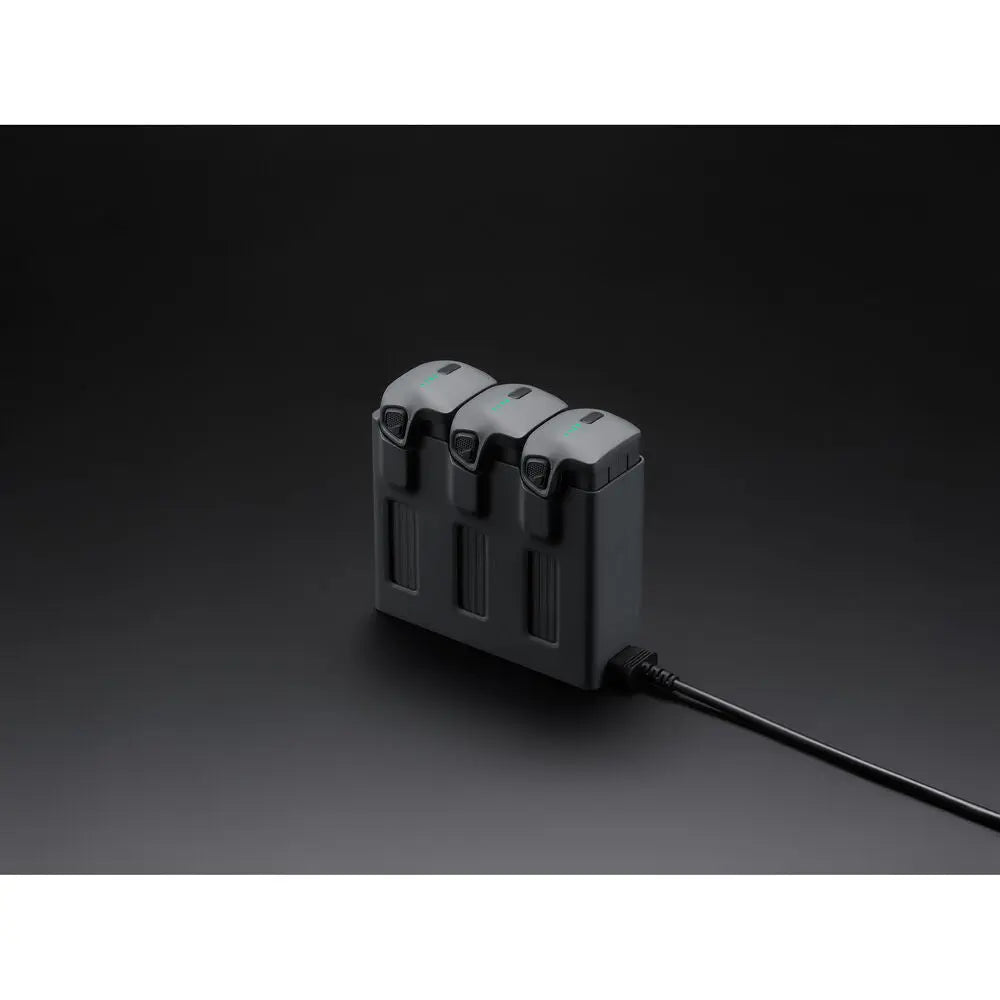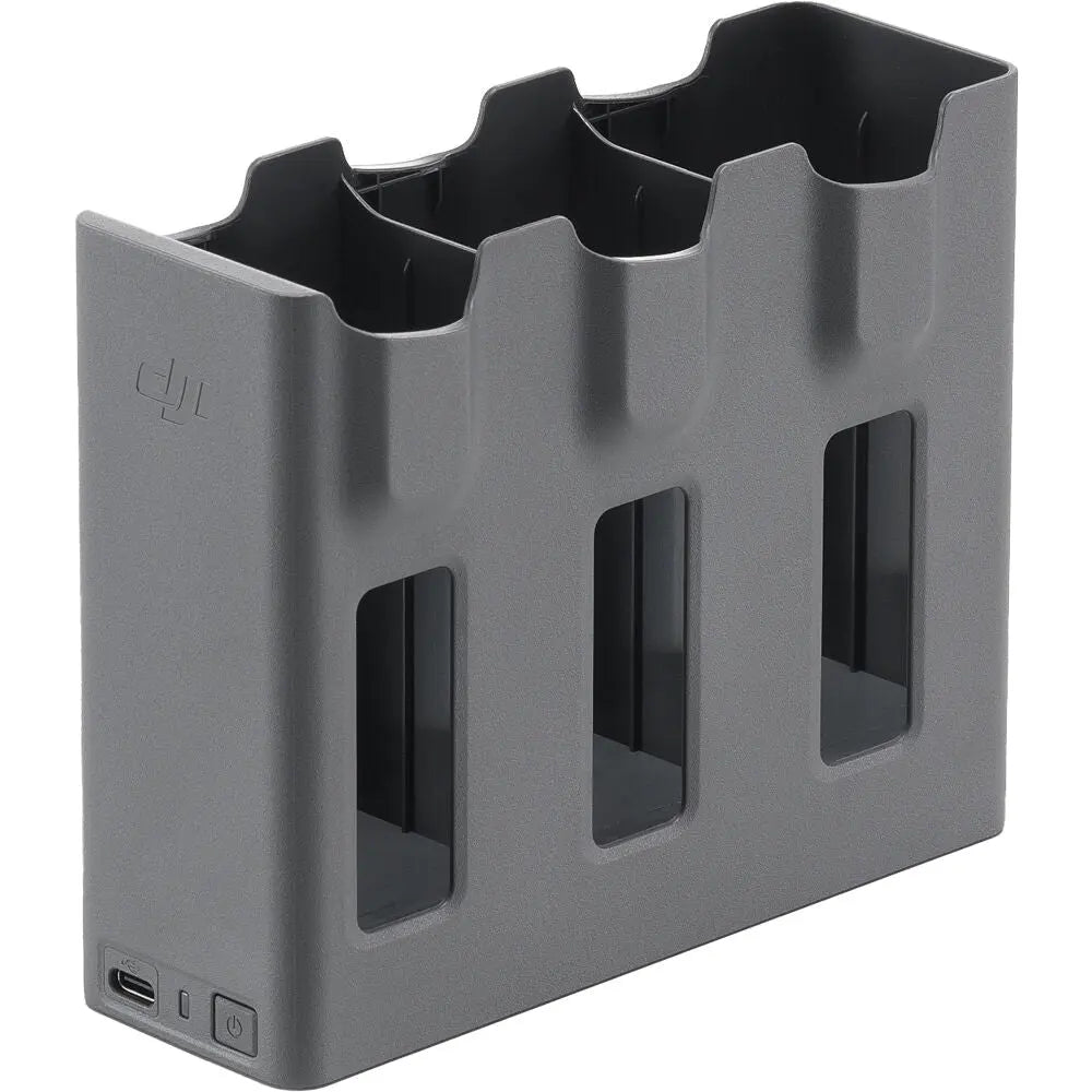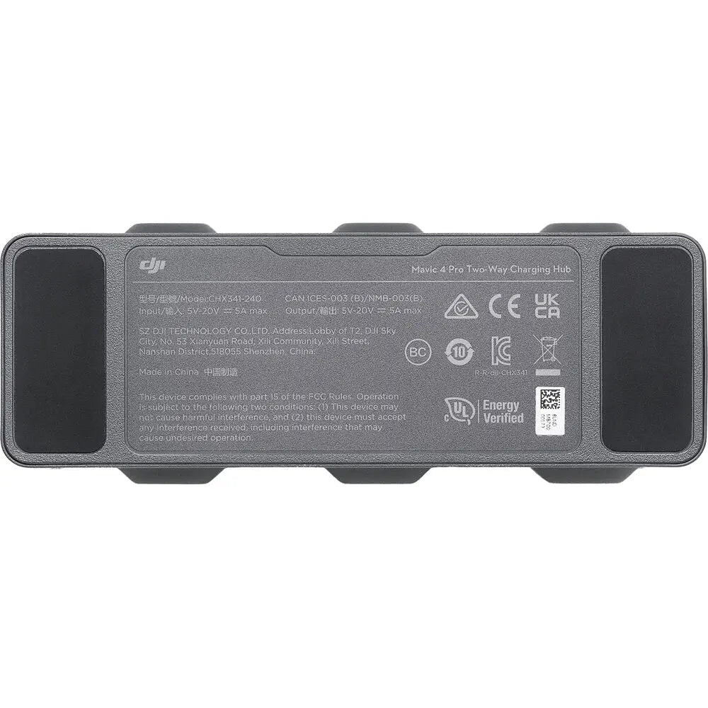 Charge one or more batteries quickly with the DJI Mavic 4 Pro Parallel Charging Hub. This hub requires a USB-C cable and power adapter that are not included. When paired with the optional DJI 240W power adapter, you can fully charge a single Mavic 4 Pro flight battery in just 51 minutes, or you can use all three slots to charge a trio of flight batteries simultaneously in just 90 minutes. With batteries inserted, the hub can be used as a USB-C power bank if needed, supplying 100W of power to a smartphone, tablet, or other USB-C-compatible device.