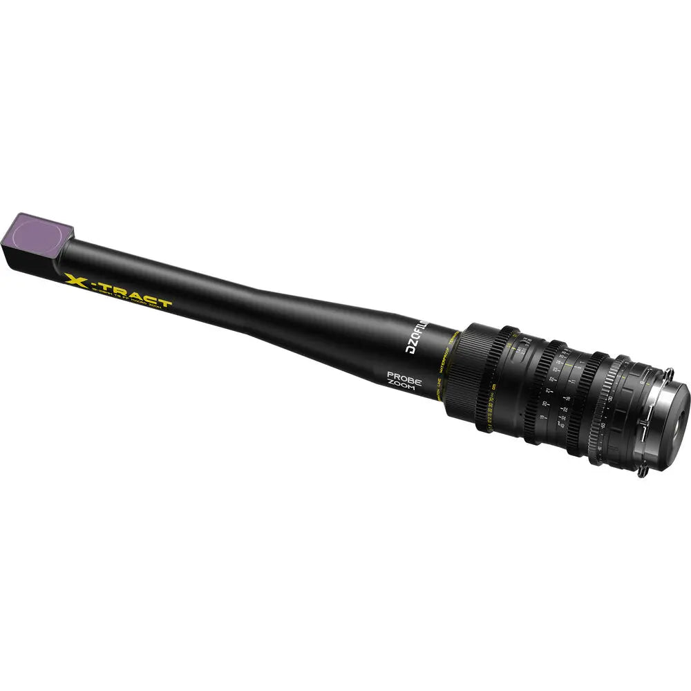Bring bold perspective and unique creativity to your close-up productions with the DZOFilm X-Tract 18-28mm T8 FF 90° Probe Zoom Lens, an innovative full-frame lens designed for tight spaces, tabletop cinematography, product shoots, and imaginative storytelling. This ARRI PL-mount version offers a right-angle 90° optical view, making it ideal for low-profile setups and hard-to-reach angles. Measuring just 41.4 cm in length and with a front diameter of less than 30 mm, the lens delivers extreme close-ups while maintaining optical precision and ease of use in constrained environments.