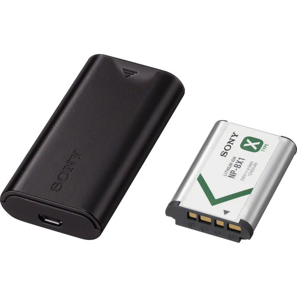 The Sony DC Charger X Series Accessory Kit with NP-BX1 Battery includes a rechargeable NP-BX1 battery pack and a BC-DCX battery charger. You can conveniently charge the battery through your computer's USB port or from a wall or car power outlet using a USB adapter (sold separately).