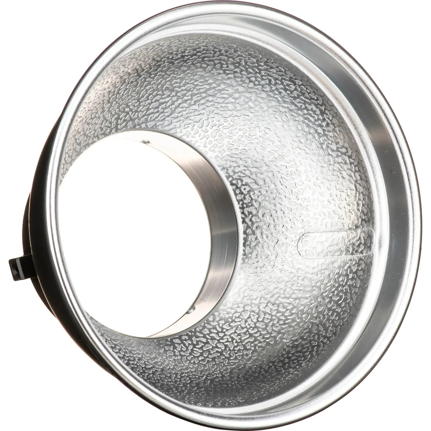 The 18cm (7") Standard Reflector from Godox features a Bowens S-style mount, allowing it to fit studio strobes, location battery strobes, LED monolights, and select fluorescent light units which receive Bowens modifiers. The reflector is made of lightweight but sturdy aluminum, with a textured silver interior for even light spread. An oblong hole in the bowl allows the reflector to be used together with an umbrella or other shafted modifier.