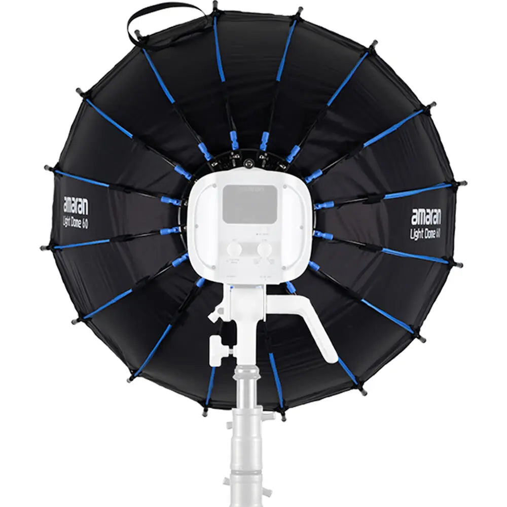 The Amaran Light Dome 60 is a 60cm circular softbox designed for use with Bowens-mount lights, offering broad, natural, and beautifully diffused illumination—perfect for larger setups. Its 16-sided structure softens harsh LED output into a smooth, even glow, delivering a professional, studio-quality lighting effect in seconds. The rounded design ensures consistent light distribution, making it ideal for group portraits, interviews, and studio video production where balanced, natural-looking light is essential.