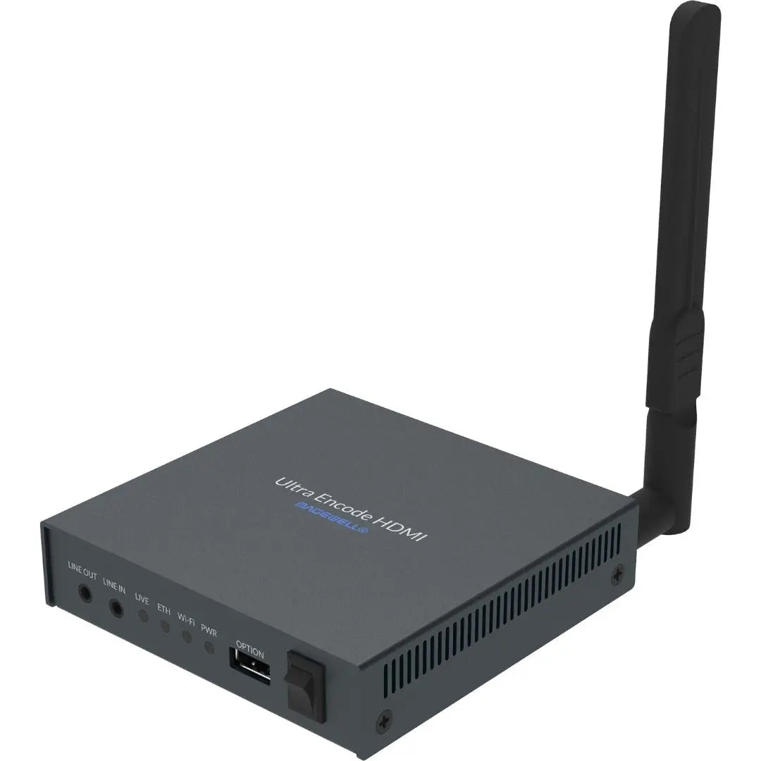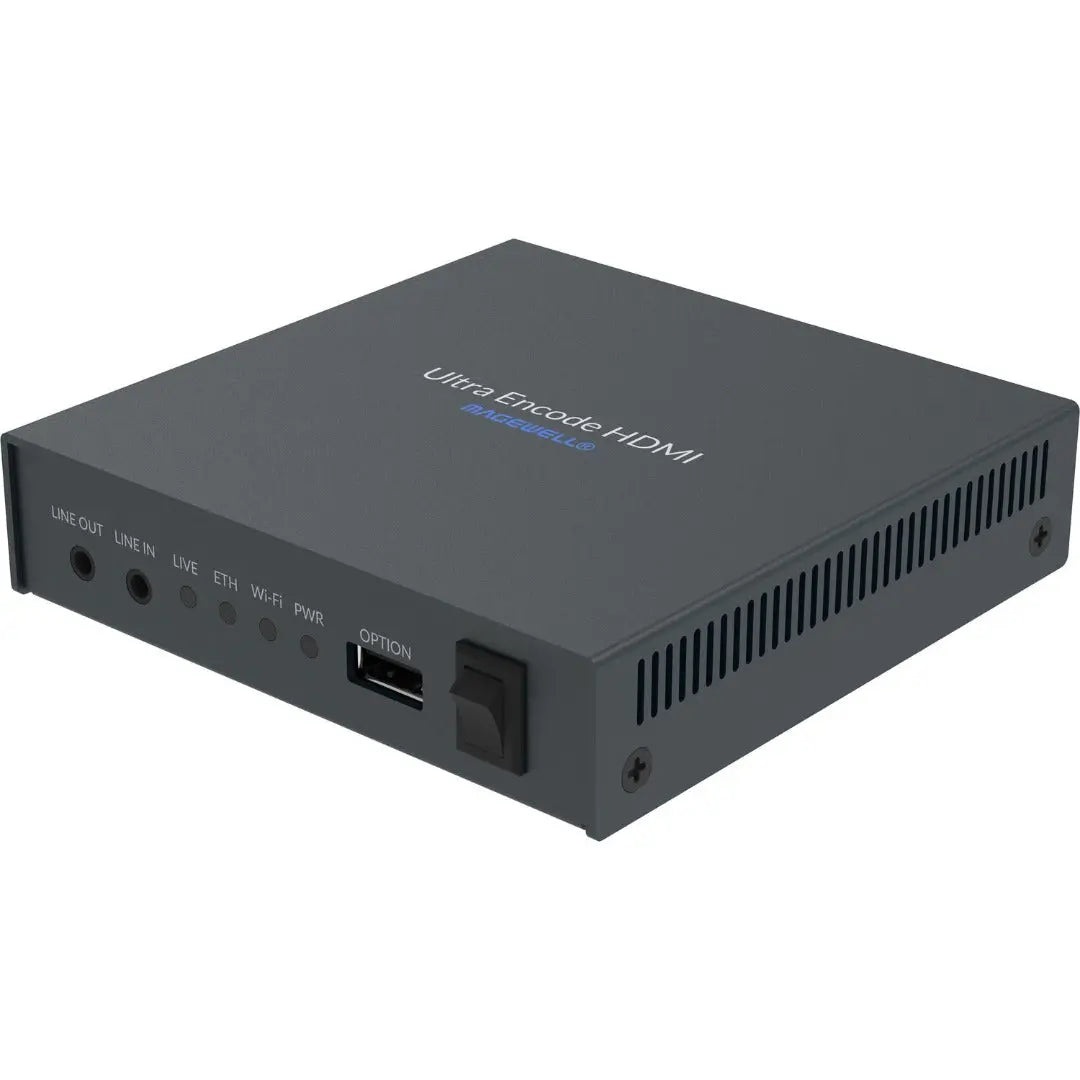 Stream your video content to multiple platforms simultaneously, using the Magewell Ultra Encode HDMI Universal Encoder. This encoder has both an Ethernet port and Wi-Fi and features HDMI 1.4a input and loop output, 16-channel embedded audio support, and 3.5mm audio input and output. It supports up to DCI 4K60 input and encodes up to 1080p60 in H.264/265 with 2-channel AAC audio. The dual streaming function provides both a 16 Mb/s main stream and a 2 Mb/s sub stream. Audio can be embedded into the encoding stream or extracted via the 3.5mm line out.