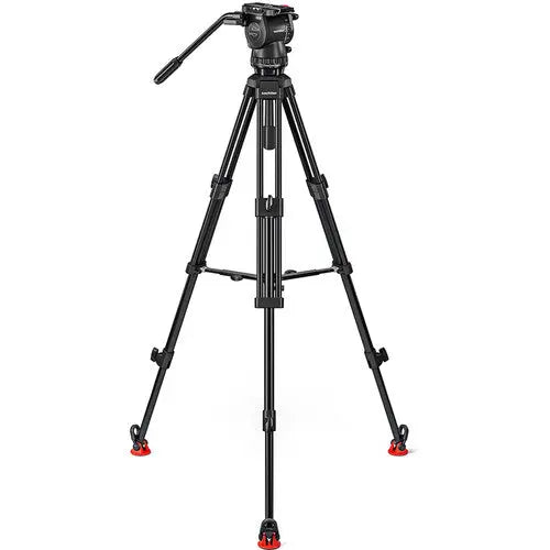 The head allows you to tilt forward so you can tilt straight down and tilt almost straight up as well, plus the 75mm half-ball has an integrated flat base for additional mounting options. The two-stage aluminium legs are strong and torsionally stable while being lightweight and easy to use. The system has a height range of 31.9 to 67.3" when using the included mid-level spreader, which simplifies shooting on uneven/rocky terrain and even stairs without having to remove the spreader. The legs feature a 75mm bowl base for quick levelling of your head and collapse down to just over 34" in length for travel.