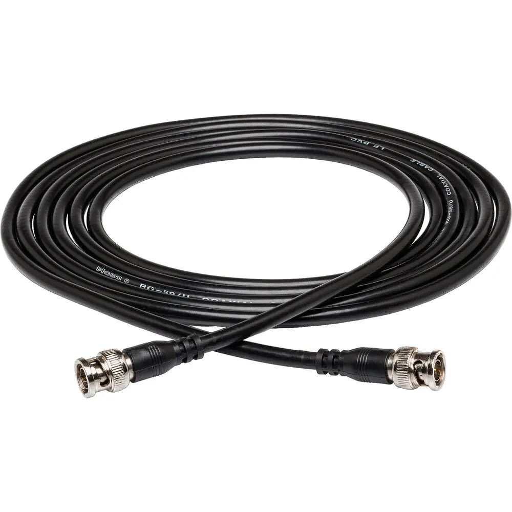 The Hosa BNC Male to BNC Male Cable, RG-59 75-ohm coaxial cable, is designed for high-quality signal transmission in video and word clock applications. Ideal for professional and studio use, this durable cable ensures reliable connectivity for equipment requiring BNC connections.