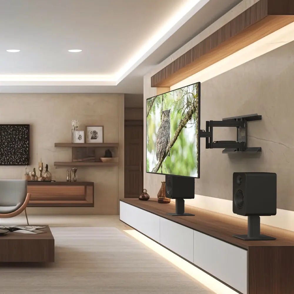-Low profile: TV sits just 5 cm from the wall