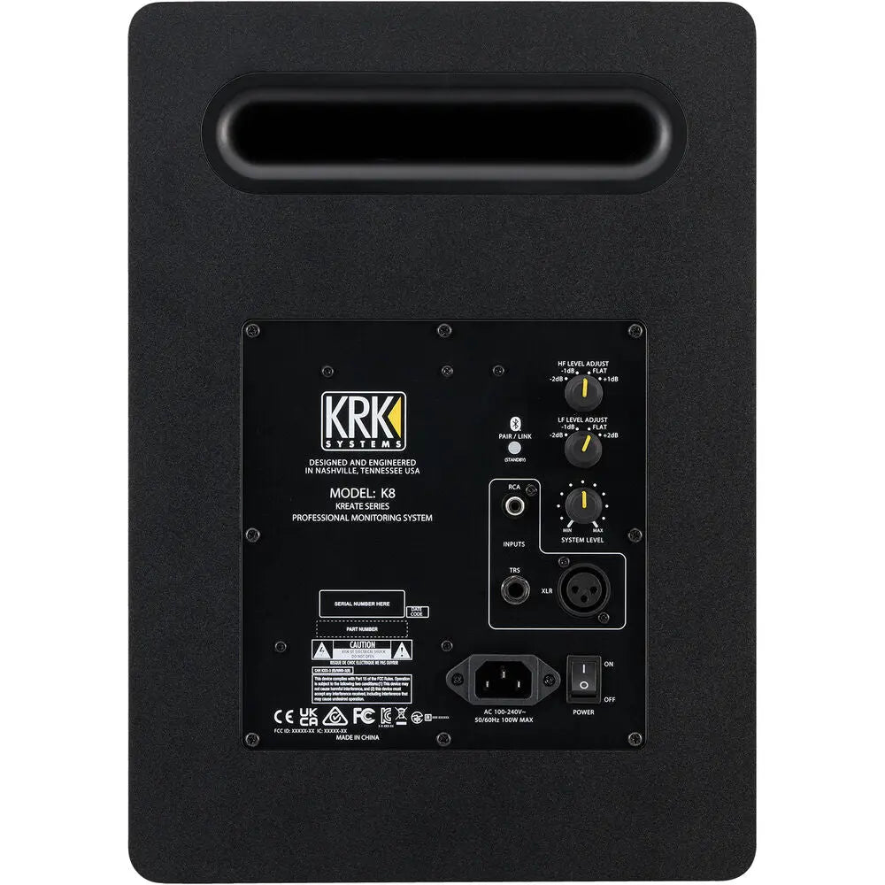 The KRK Kreate 8 is a budget-friendly studio monitor that builds on the success of KRK's popular Classic Series, now enhanced with Bluetooth connectivity. This near-field, active monitor delivers the renowned KRK sound famed for its clarity, transparency, and vibrancy. Kreate 8 offers 100W bi-amped, Class-AB amplification that powers an 8" glass aramid woofer and a 1" textile-dome tweeter, ensuring accurate frequency response and reliable performance for precision monitoring. Dedicated Level, high-frequency, and low-frequency controls aid in tuning your monitor for your specific acoustic environment.