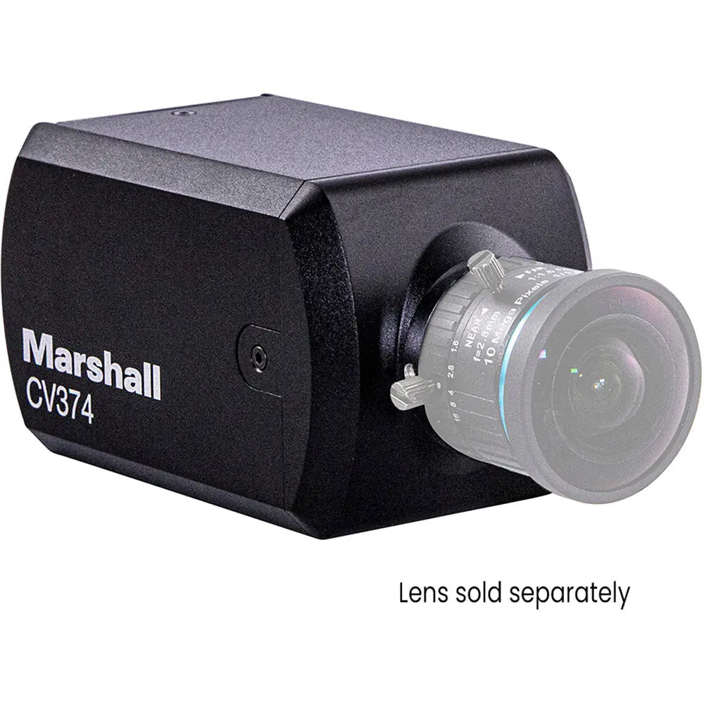 Low-Latency NDI|HX3Featuring the efficient NDI|HX3 codec gives the miniature CV374 camera an advantage over other streaming cameras with 100ms end-to-end of latency using less bandwidth and maintaining the premium video quality of the source. Simultaneous HDMI output and other streaming options such as SRT, RTSP, MPEG-TS, HEVC, and more.Interchangeable CS/C Mount LensesThe CV374 compact camera is built with a CS/C lens mount with optional DC Auto Iris. Marshall offers a wide selection of high-quality CS and C mount prime and varifocal lenses to meet the individual needs of the productions, projects, or applications.Durable, Powerful DesignThe compact CV374 body is chiseled from a block of aluminum making it extremely durable in a compact size with rear I/O protection. The CV374 operates with exceptional low-light sensitivity, ensuring a clear picture in challenging lighting conditions with refined remote adjust-and-match capability over network or VISCA over RS-485 commands. It is suitable for a variety of AV over IP network, cloud production, remote contribution, and HDMI workflows.ApplicationsThe compact CV374 is suitable for use in AV over IP or HDMI workflows where image quality and versatility are of utmost concern, including live broadcast, productions, concerts, courtroom capture, corporate video, government assembly, sportscast, newscast, reality television, eSports, live performance, house of worship, and many more.