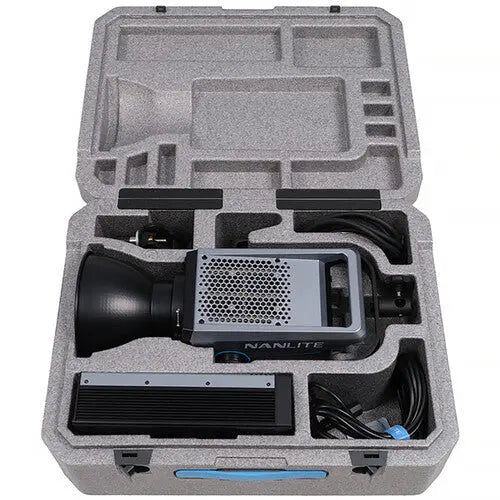 The Nanlite FC-500C RGB LED Spotlight is a powerful 500W light that delivers improved performance with a Kelvin range of 2700 to 7500K, plus 36,000 vivid colors for a wide range of RGB color options. Like its bi-color version, the FC-500C is a compact, stylish AC-powered fixture that can also run on optional V-mount batteries when combined with the separately available FC power controller. With the Nanlite's innovative wing-shaped top housing, the FC500C stands out from other fixtures. It's worth mentioning that this is Nanlite's brightest RGBW light. Delivering an impressive light output, it ensures faithful color reproduction with a CRI of 95 and a TLCI of 94 and provides advanced features with intuitive onboard and remote control.