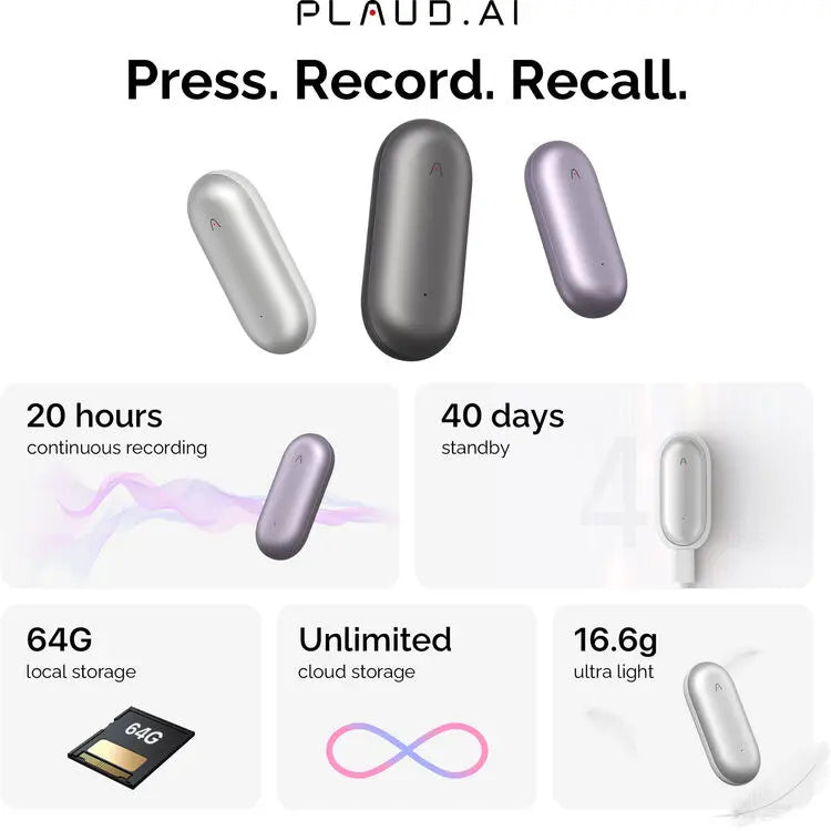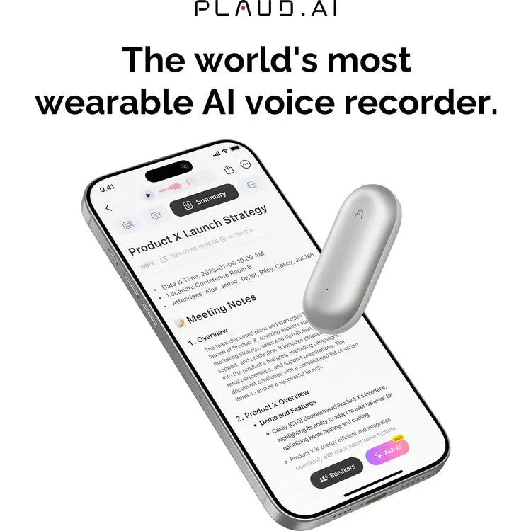 PLAUD NotePin is a wearable AI note-taking device designed to capture conversations hands-free and instantly turn them into searchable transcripts, summaries, and action items. Wear it using the magnetic pin, clip, wristband, or necklace, and start recording with a single press.