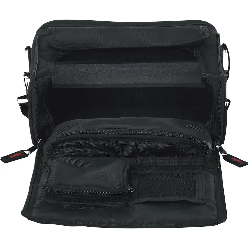 A convenient top antenna pass-through allows the transmitter antenna to remain extended while the unit is inside the bag, making setup quick and efficient. The wide zippered opening provides easy access to all components, while the included detachable shoulder strap ensures comfortable transport for rehearsals, live gigs, and touring use.
