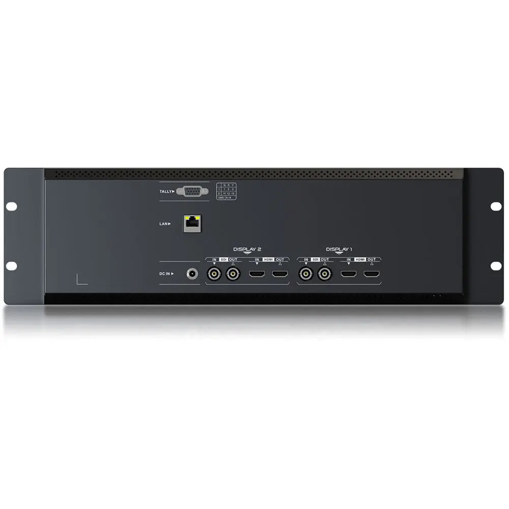 The Lilliput RM7026-12G is a dual 7-inch rackmount production monitor designed for professional broadcast and live environments. Featuring 1920 x 1200 resolution LCD panels with 1000 nits brightness and Hybrid Log Gamma HDR support, it delivers sharp, high-contrast monitoring in both studio and field setups. With dual 12G-SDI and HDMI 2.0 inputs/loop outputs, it supports UHD 4K and HD formats for flexible workflows. Image analysis tools such as waveform, histogram, false color, and focus peaking ensure accurate monitoring, while its rugged metal 3U rackmount design provides durability in demanding installations.