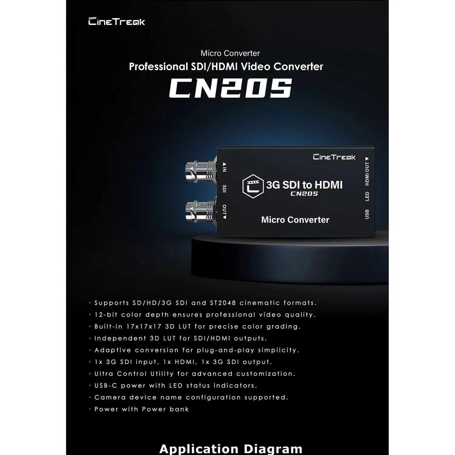 Easily convert SDI signals to HDMI with the Professional SDI to HDMI Video Converter from CineTreak, designed for professional broadcast, live production, and multi-camera workflows. Compact yet powerful, this device supports high-quality video conversion while providing advanced colour and monitoring features.