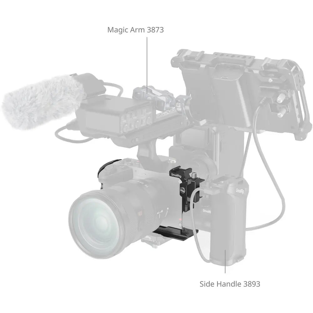 For quick setup changes, the cage features a built-in Arca-type quick-release plate at the base, enabling seamless transitions between handheld, gimbal, and tripod configurations. An included HDMI cable clamp adds extra stability and protection for your HDMI connections, helping to prevent accidental unplugging or wear during use. Ideal for professional filmmakers and content creators, the SmallRig Cage for Sony FX2 transforms your camera into a robust, versatile rig ready for any production scenario.
