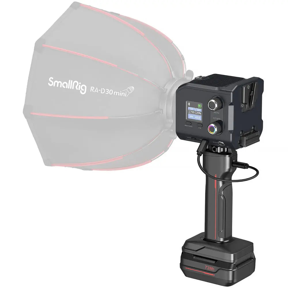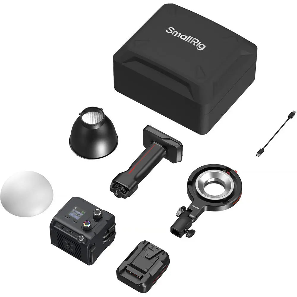 The RC 100C benefits from SmallRig’s independently developed cooling system, ensuring efficient and reliable operation even during extended use. Built from V-0 flame-retardant PC and ABS materials with a reinforced metal base, the light is robust yet lightweight, reducing weight by 30% compared to aluminium alternatives. It is also compatible with SmallRig’s mini mount modifiers and, via the included Bowens mount adapter, supports a wide range of Bowens accessories such as the RA-D30, RA-D60, and RA-R4545 softboxes. The kit comprises the RC 100C light, SH73 battery grip, Bowens mount adapter, USB-C cable, and a convenient carrying bag for easy transport and storage.