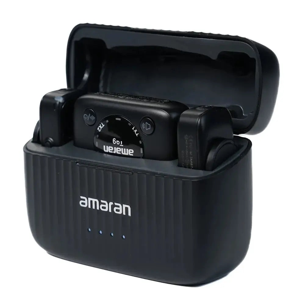 Designed to streamline your workflow, the system features one-tap shutter recording, real-time audio monitoring on the receiver, and instant playback through your connected device for quick checks. The moment you remove the mics from the charging case, they automatically pair, providing a fast and seamless setup. Additional control is available through the Amaran app, which allows you to adjust settings and manage recording options wirelessly.
