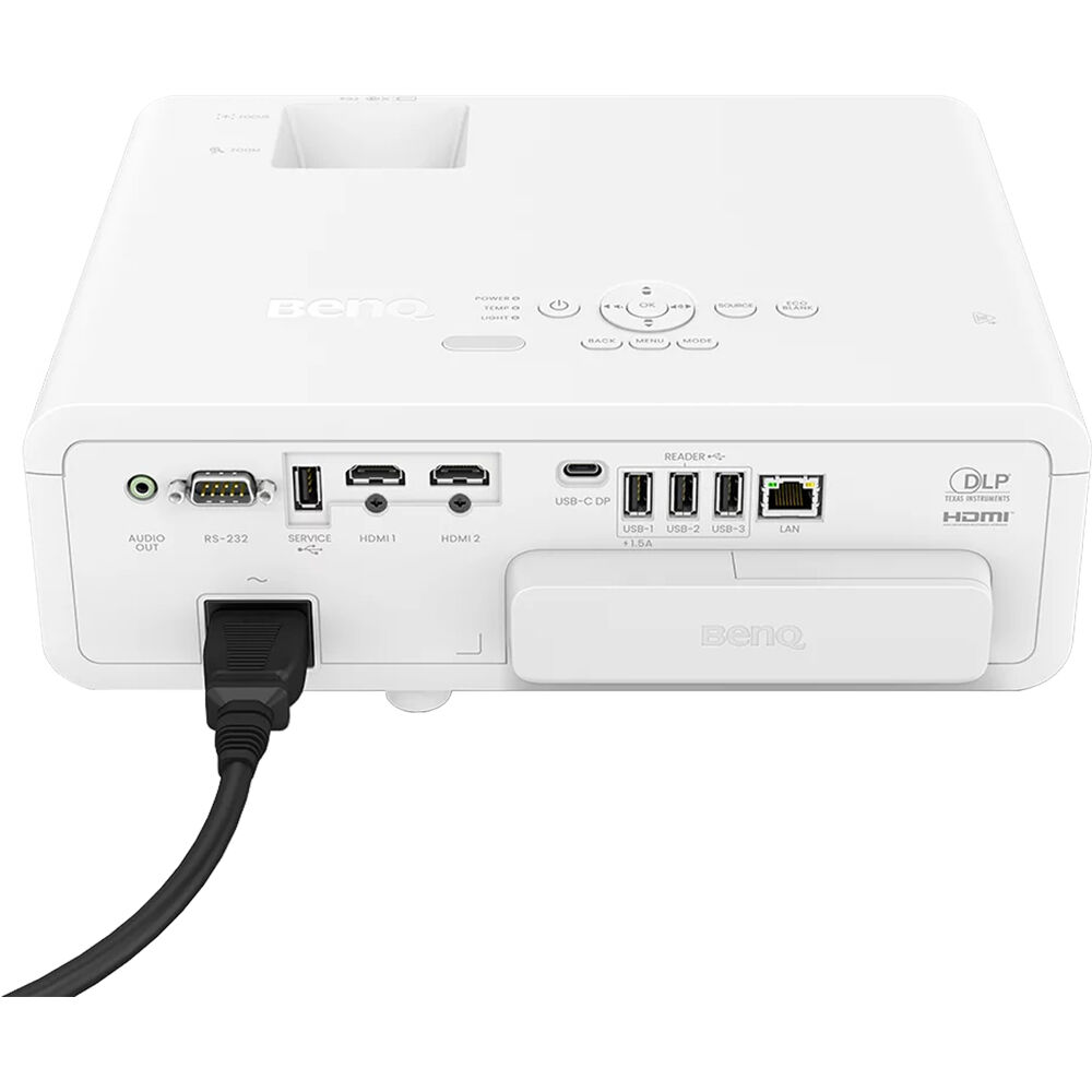 Setup is fast and precise with Auto Vertical Keystone, 2D Keystone (±40°), and Corner Fit image adjustment. Additional features include integration with BenQ IAM, DMS, and AMS, Bluetooth keyboard and mouse support, USB webcam compatibility, plug-and-play media, and automatic OTA firmware updates.
