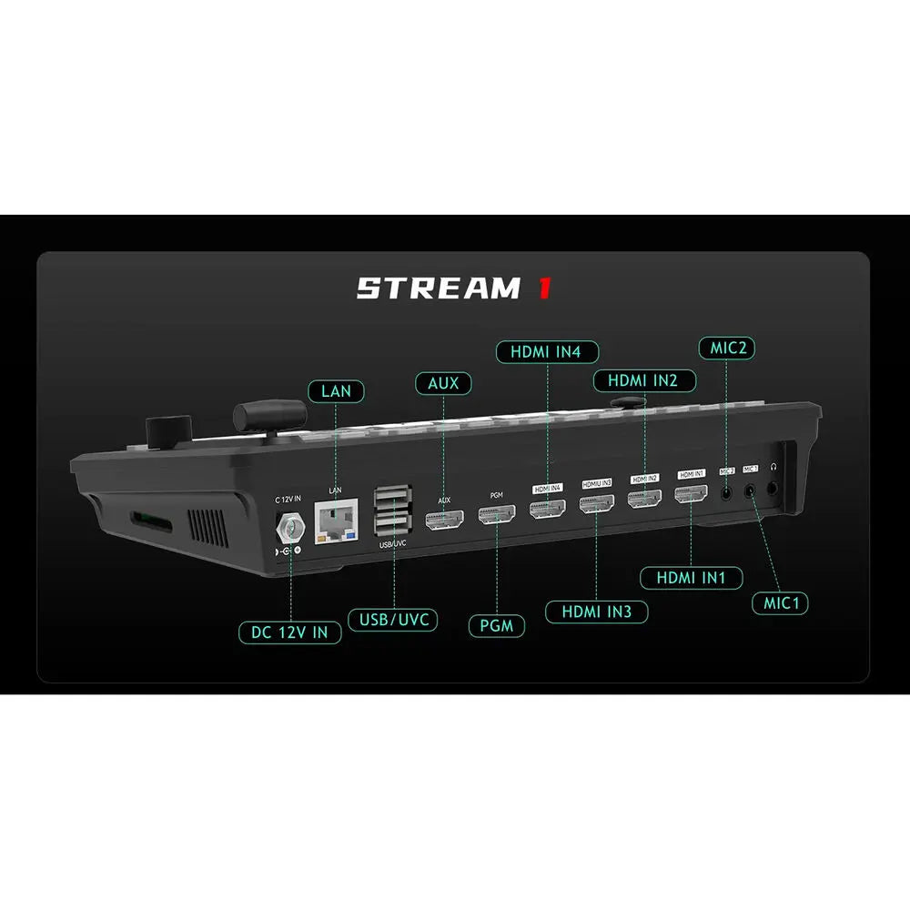 Complete with a 12V 2A power adapter and USB-A 3.0 cable, the STREAM 1 is the ideal solution for professional multicamera live production, offering flexibility, power, and advanced functionality in one compact switcher.