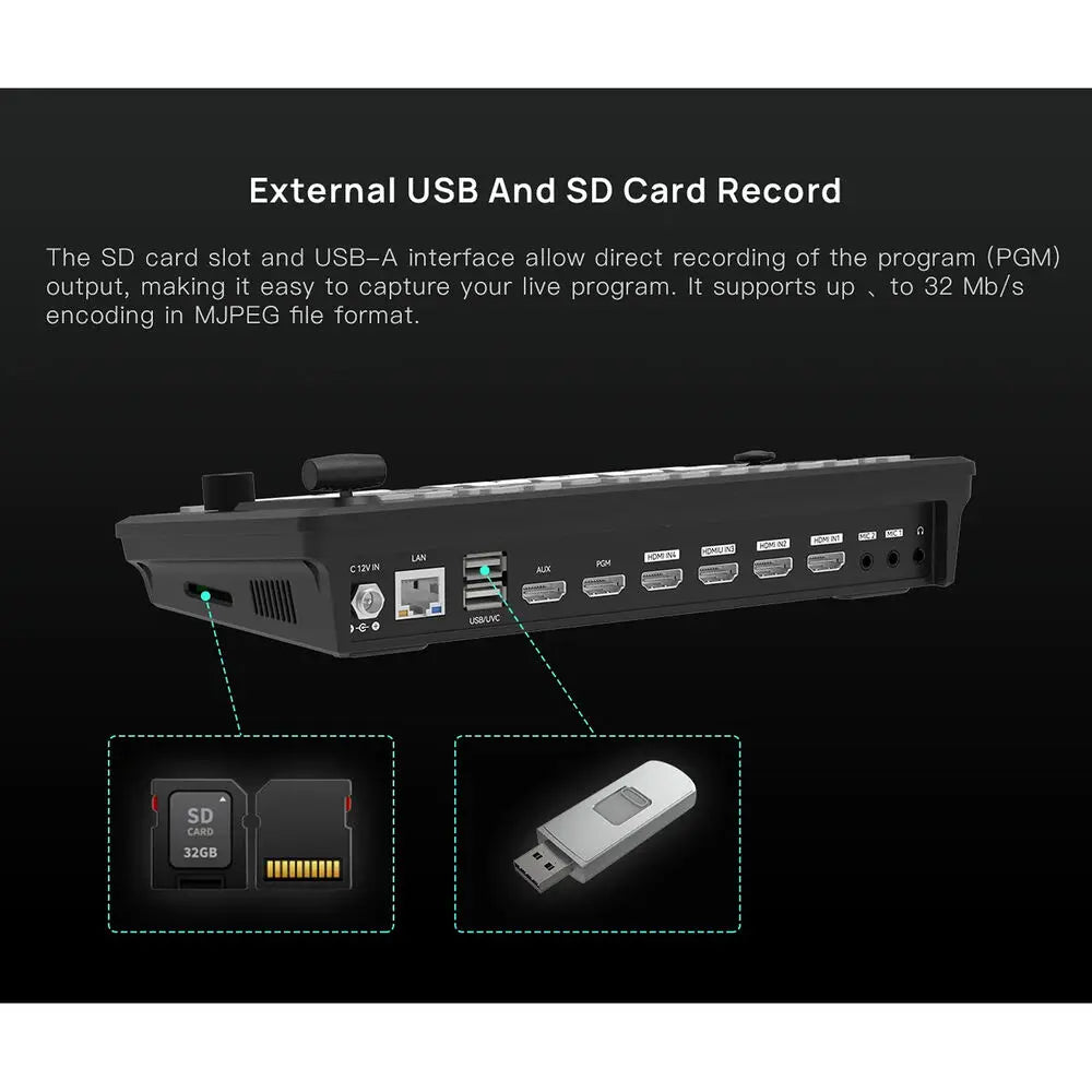 Complete with a 12V 2A power adapter and USB-A 3.0 cable, the STREAM SH Video Switcher offers professional multicamera switching, flexible streaming, and recording in a single, compact, and reliable device—perfect for live production, content creation, and hybrid broadcasting setups.