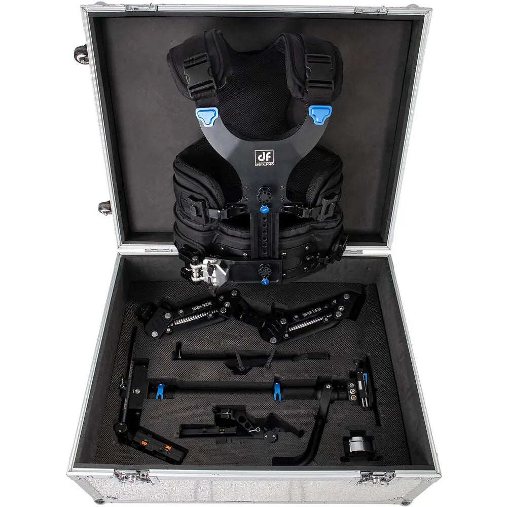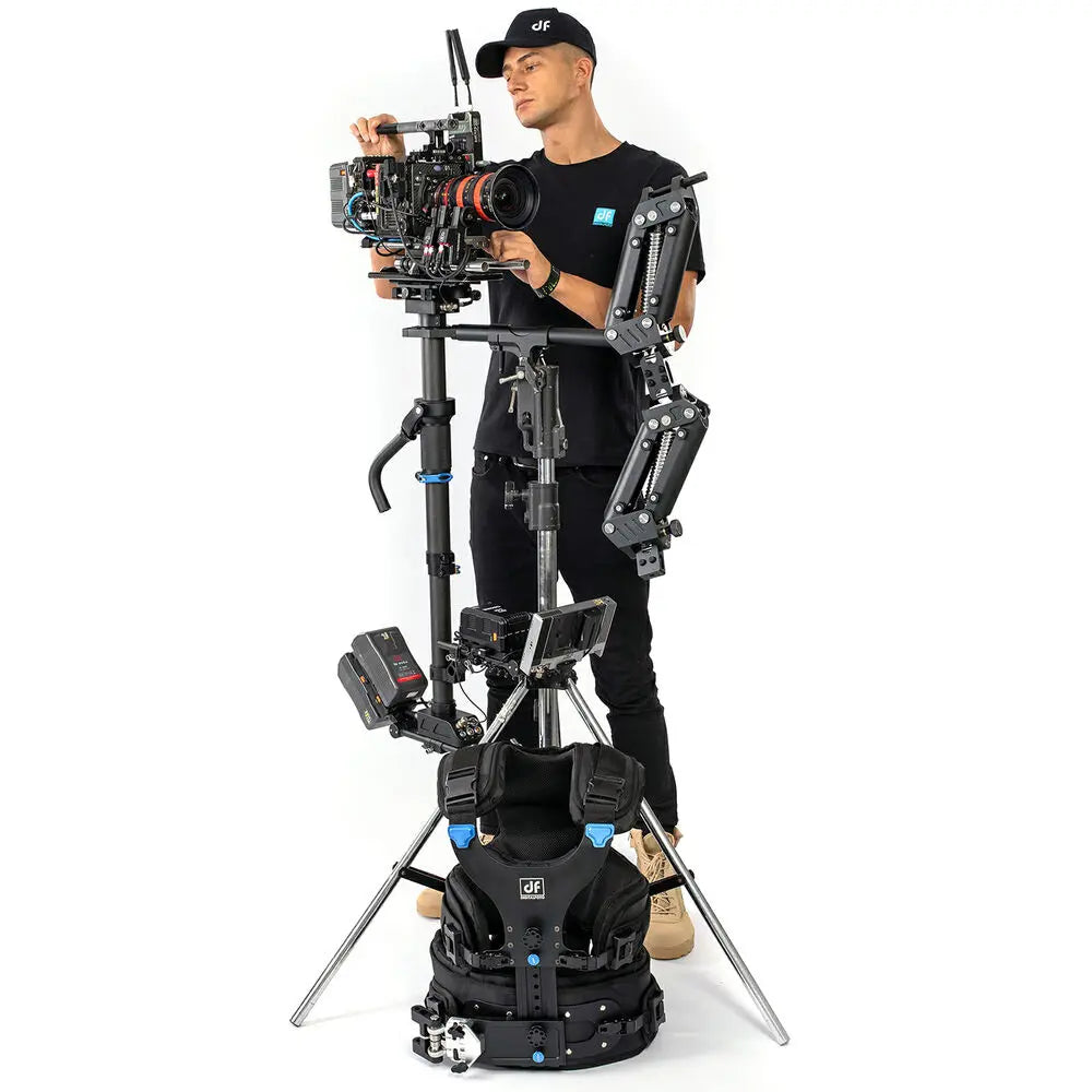 The DigitalFoto THANOS-PROCINE Stabiliser System is purpose-built to support large cine camera rigs while delivering smooth and stable handheld footage. Combining a padded support vest, dual shock-absorbing arm and a strong carbon fibre post sled, this professional system supports payloads up to 35 kg, making it suitable for demanding setups including the ARRI ALEXA 35, ARRI AMIRA, Sony FX6 and DJI Ronin 4D with the Flex system attached.