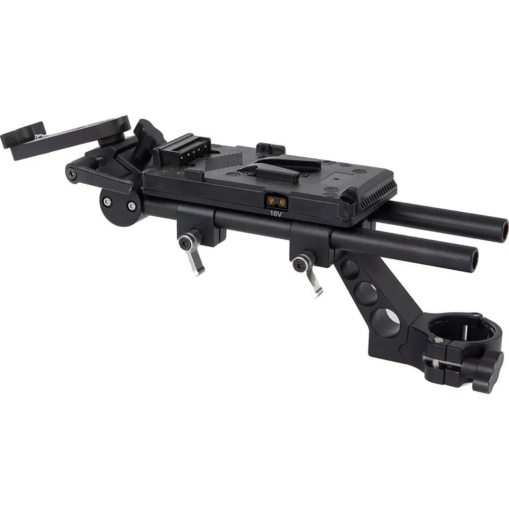The carbon fibre handheld post sled enables precise balance with fine-tuning knobs and an adjustable vertical height range of 67 to 110 cm. A quick-release plate ensures fast transitions between tripod and handheld operation. To counter heavy cine configurations, 0.5 kg and 0.95 kg counterweights are included. The sled also offers pass-through 3G-SDI and power distribution, allowing you to power cameras and accessories while sending clean video signals to a monitor. Dual V-mount battery plates and 16 V/24 V D-Tap power outputs provide added flexibility for extended productions.