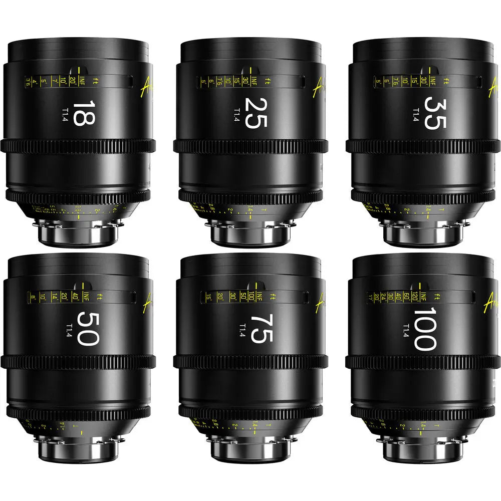 The DZOFilm Arles FF/VV Prime Cine 6-Lens Set (ARRI PL) is a complete cine lens kit designed for filmmakers seeking professional, large-format image quality and cinematic versatility. This premium set includes six full-frame and VistaVision-compatible prime lenses—18mm, 25mm, 35mm, 50mm, 75mm, and 100mm T1.4 lenses—covering a wide range of focal lengths for storytelling flexibility. Each lens is engineered with precision optics, 16-blade irises, and multilayer nano coatings to deliver exceptional image sharpness, minimal chromatic aberration, and beautifully controlled bokeh.