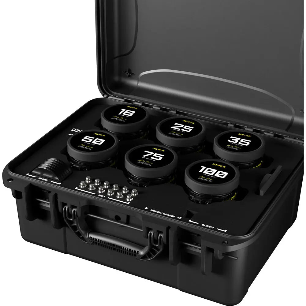 Whether capturing sweeping wide shots with the 18mm lens or tight, cinematic portraits with the 100mm lens, the DZOFilm Arles FF/VV Prime Cine 6-Lens Set offers filmmakers a versatile, high-quality toolkit capable of producing consistently stunning, large-format imagery. This comprehensive kit is ideal for cinematographers who require precision, reliability, and a consistent visual style across all their productions.