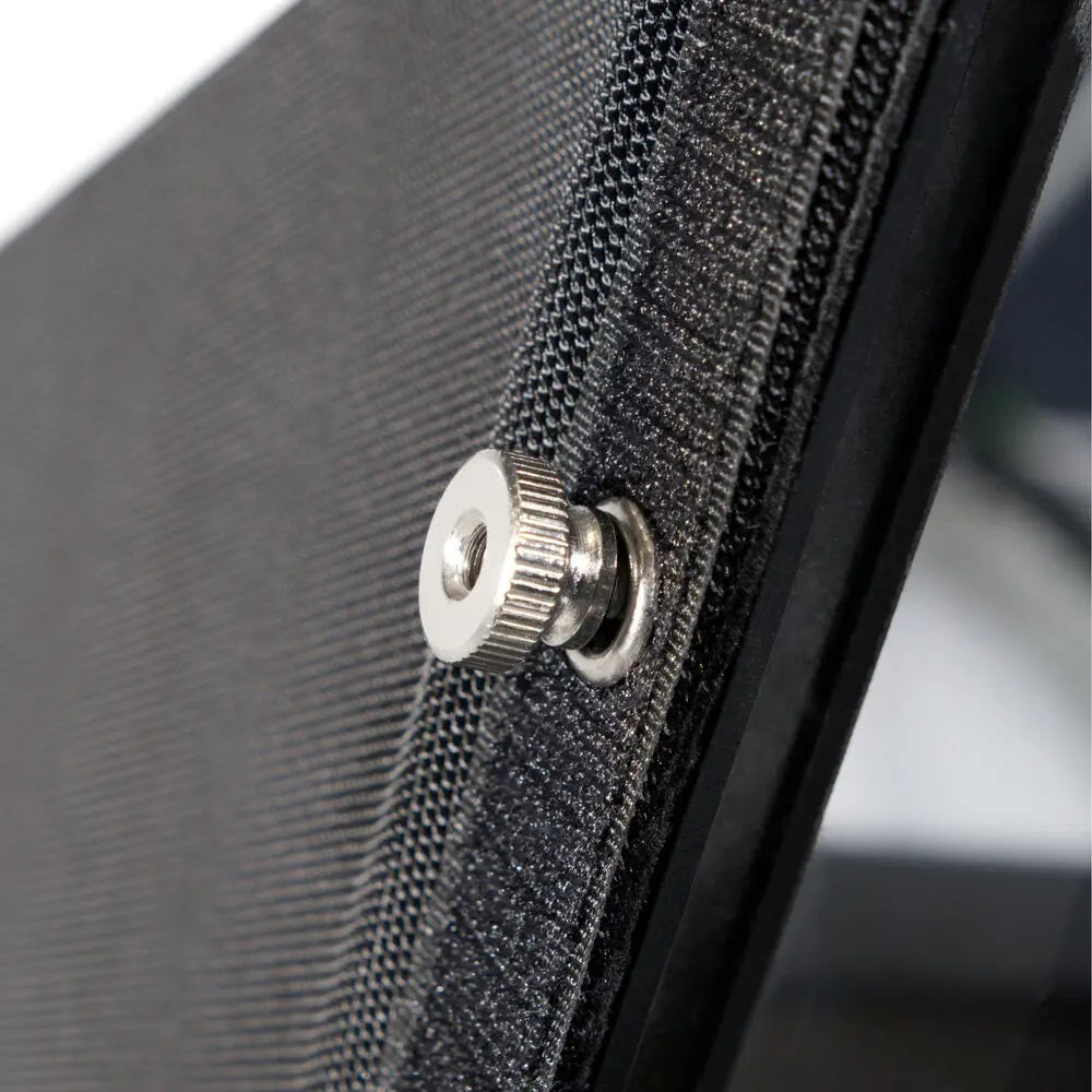The new version of the adjustable lens hood is anchored to the frame and secured with magnets for extra stability. It is also designed to accommodate larger lenses thanks to its wider opening.