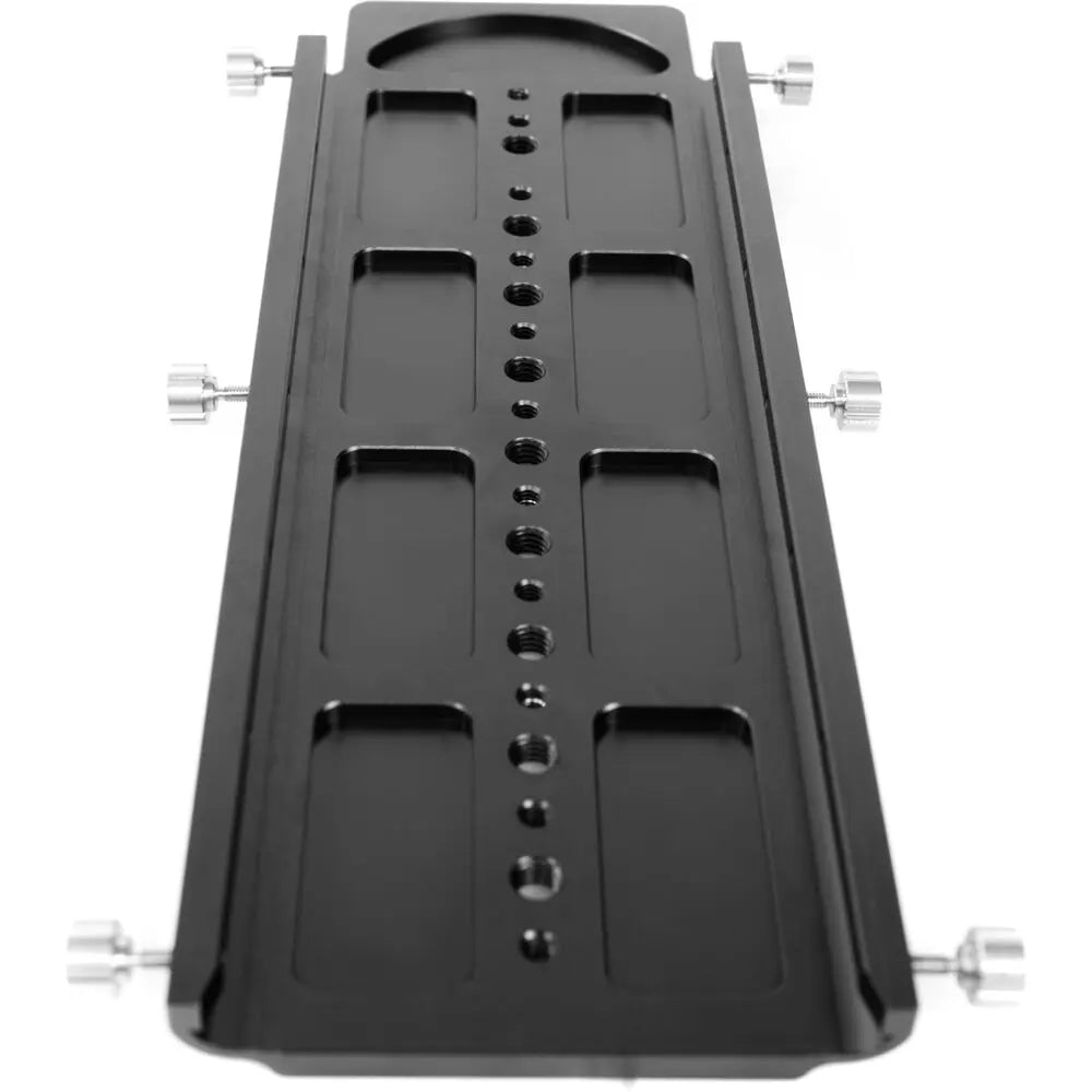 Included with the teleprompter are three different camera mount bases in varying heights for compatibility with professional ENG cameras, cinema cameras, mirrorless cameras, and camcorders. The tall riser measures 13.5cm, the short riser measures 5cm, and the DSLR riser measures 16cm.