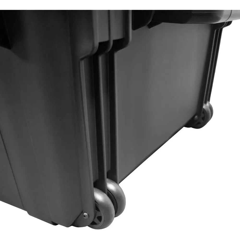 Protect you teleprompter with this black ikan Rolling Hard Case for PT4500/PT4700/PT4900 Teleprompter, which is manufactured for ikan by SKB. This iSeries case features an empty interior that fits the foam that is included with either the PT4500, PT4700, or PT4900. This allows you to pack your teleprompter in the same foam and in the same manner that they were originally shipped to you. This impact-resistant case is made from injection-molded polypropylene copolymer resin to be resistant to UV radiation, solvents, corrosion, and fungi according to MIL-STD-810F standards. It is IP67-rated and gasket-sealed to make it dustproof and temporarily submersible.