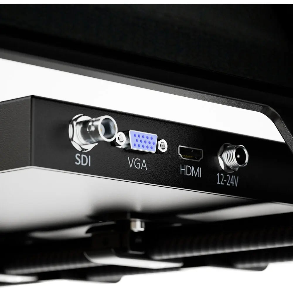 The monitor features HDMI, SDI, and VGA video inputs. Its native resolution is 1920 x 1080 and its maximum brightness is 1000 cd/m². Use the OSD adjustment to view and change settings like brightness, contrast, backlight, tint, chroma, and sharpness. You can also adjust the intensity of the RGB. The native aspect ratio for the monitor is 16:9, but you can adjust it to be 4:3, full, or to automatically detect the ratio and set it accordingly. A 178° wide viewing angle ensures your talent can view the text from virtually anywhere. An image flip button allows you to horizontally or vertically flip the image. When plugged into a video switcher, two tally lights on the side and front of the monitor turn either green or red to indicate whether or not the camera is live.
