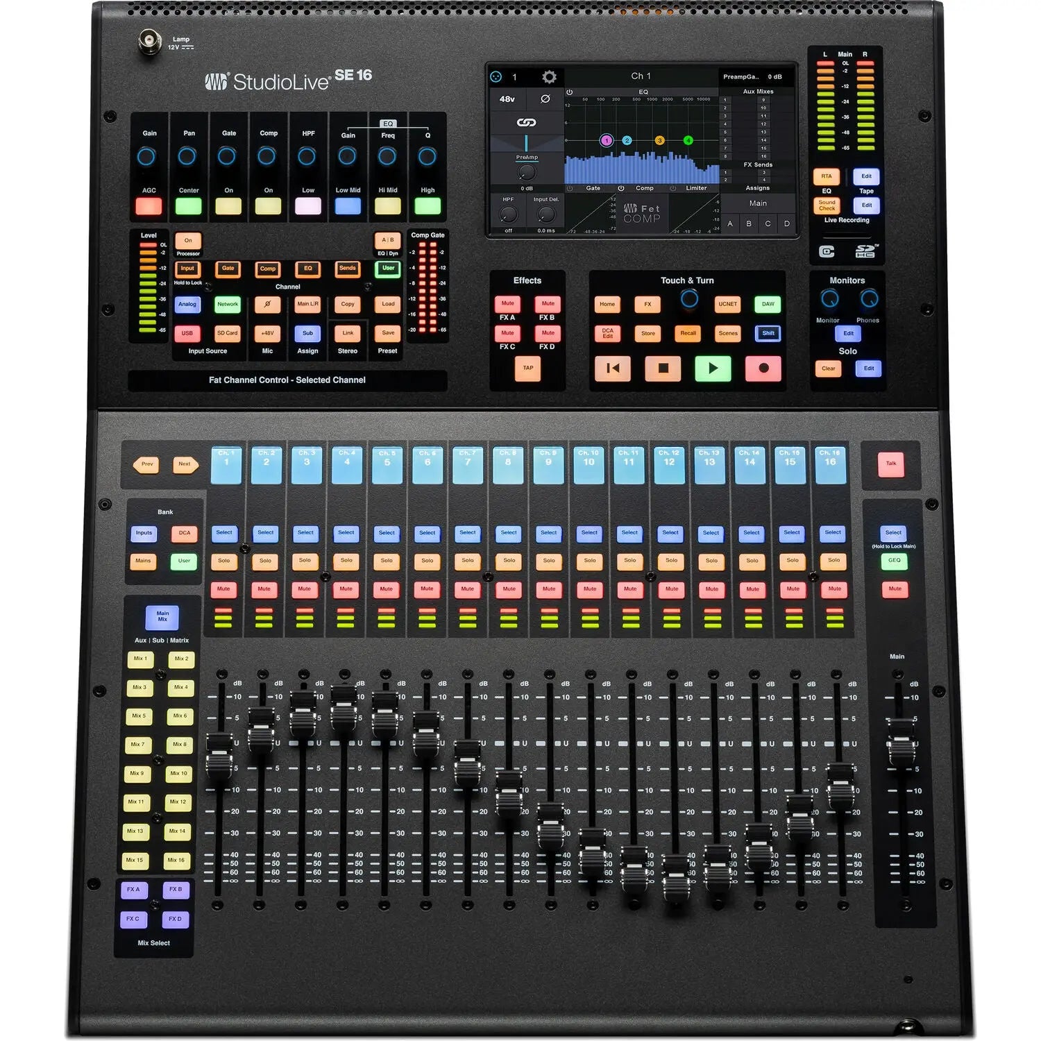 The PreSonus StudioLive Series III SE 16 is a compact, professional-grade digital mixer designed for live sound, studio recording, and broadcast applications. Combining a 16-channel analog front-end with a 64x64 USB audio interface and onboard SD card recording, it delivers powerful all-in-one performance for production environments that demand reliability, flexibility, and superior sound quality.