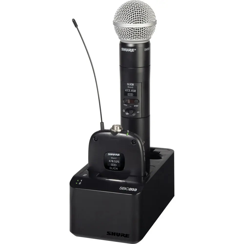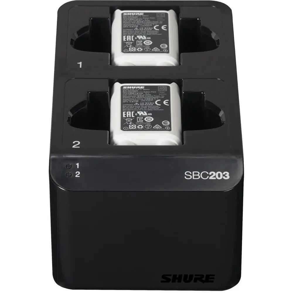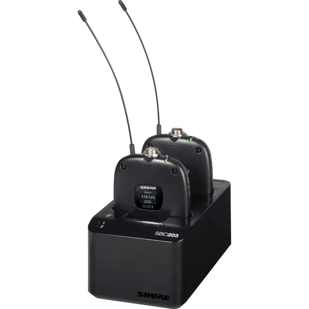 Shure SBC203 Dual-Docking Recharging Station + 2x SB903 Rechargeable Battery for SLX-D Transmitter Set
