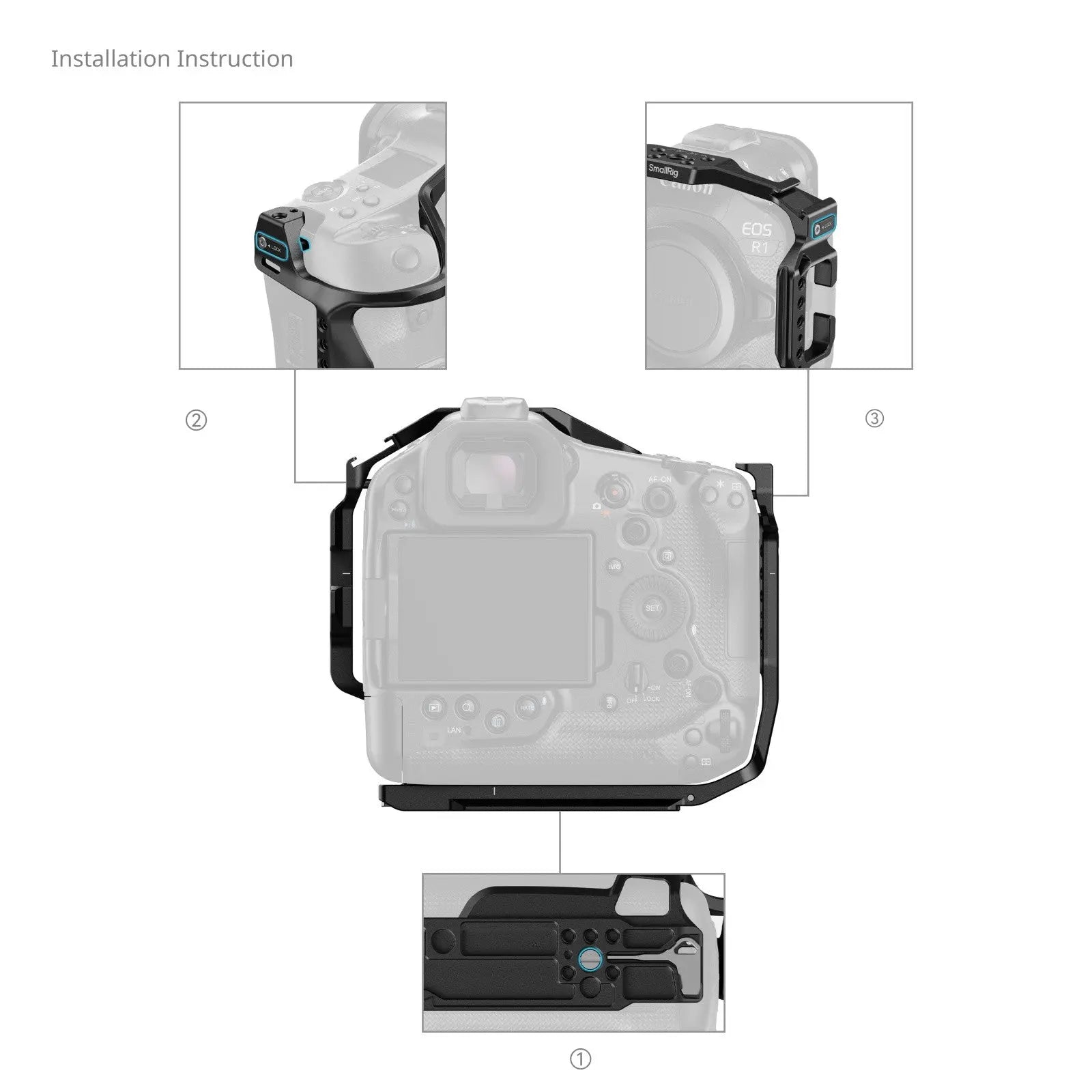 The SmallRig Cage for Canon EOS R1 5413 enhances protection, handling, and expandability while preserving full access and functionality of the camera. Designed with an integrated full-cover construction specifically for the EOS R1, the cage wraps securely around the body for comprehensive protection without blocking buttons or interfering with intuitive operation.