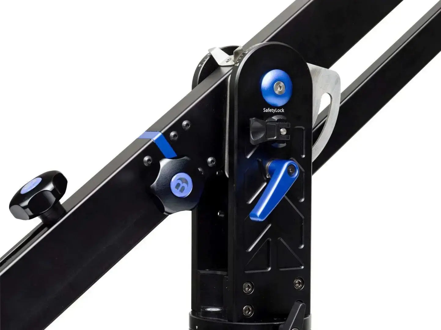The foldable MoveUp4 Travel Jib from Benro. The aluminium jib arm can hold cameras weighing up to 8.8 lb and can extend them from 48.4" up to a maximum height of 72.8". For mounting a camera, tripod head, or other solution, the base plate has a 3/8"-16 thread. Also, there are threaded accessory mounting points for attaching items such as a monitor or microphone with ease. This model's folding ability makes it convenient to carry in the included case as it folds down to just 27.2" and weighs 6.7 lb.