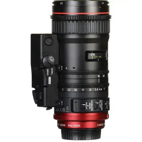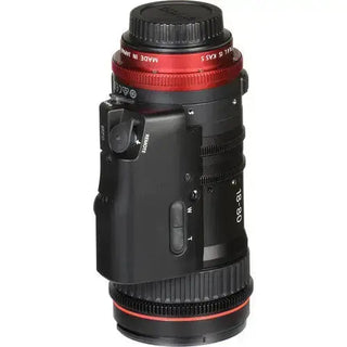 Further enhancing the versatility of this lens, Canon has equipped it with a servo drive unit compatible with industry-standard lens controllers, including Canon's broadcast ZSD-300D and FPD-400D, for full zoom, focus, and iris control. Alternatively, you can outfit the lens with the optional ZSG-C10 Control Grip for ENG-style lens control and operation. Power is provided to the grip from compatible cameras via the EF mount. For non-servo zoom control, the lens features cine-standard 0.8 mod gears, as well as a rubberized grip on the focus ring enabling comfortable manual operation.