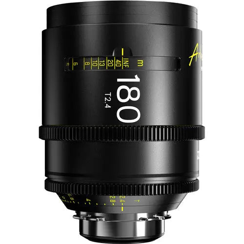 Equip your full-frame ARRI PL-mount camera with the DZOFilm Arles 180mm T2.4 FF/VV Prime Cine Lens (PL Mount, Metres) to capture consistently sharp, natural-looking imagery. This 180mm prime lens has an aperture range of T2.4 to T22, offering excellent low-light capture and arrestingly shallow depth of field. A 16-blade iris and optical construction of multiple grouped elements provide a soft, natural bokeh to your high-quality imagery. The focus ring rotates 270°, and the iris ring 77° for intuitive manual adjustments.