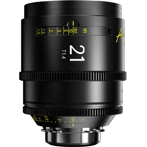 This 14mm prime lens has an aperture range of T1.9 to T22, offering excellent low-light capture and arrestingly shallow depth of field. A 16-blade iris and optical construction of multiple grouped elements provide a soft, natural bokeh to your high-quality imagery. The focus ring rotates 270°, and the iris ring 77° for intuitive manual adjustments.DZOFilm Arles 21mm T1.4 FF/VV Prime Cine Lens (PL Mount, Feet)