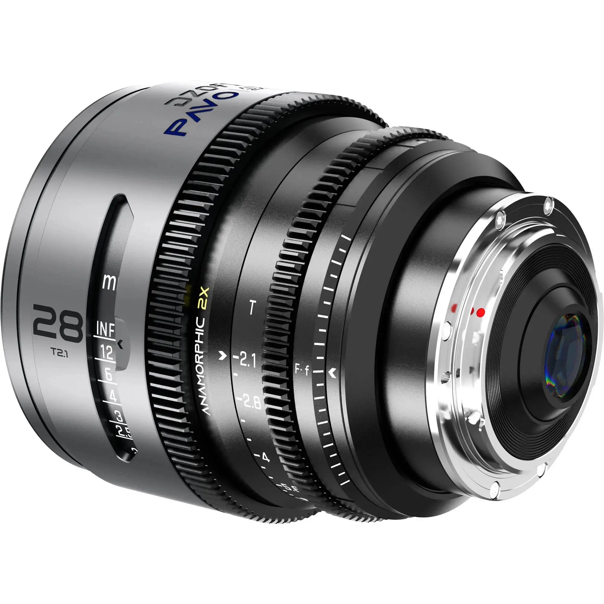 Using this DZOFilm PAVO 28mm T2.1 2x Anamorphic Prime Lens, you may capture breathtaking cinematic images with a vintage anamorphic style. This blue-coated lens, designed to cover the Super35 sensor of cine-style cameras, has a maximum aperture of T2.1 and employs 2x magnification, achieving what is commonly referred to as "true" anamorphic imaging with a 2.39:1 aspect ratio and boasting exceptional "waterfall" bokeh and elegant blue horizontal flares.