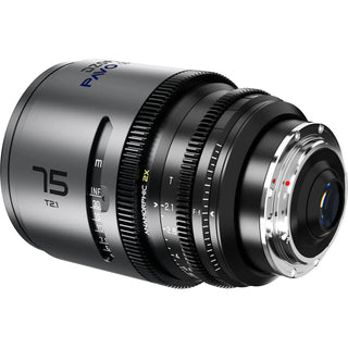 Using this DZOFilm PAVO 75mm T2.1 2x Anamorphic Prime Lens, you can capture breathtaking cinematic images with a vintage anamorphic style. This blue-coated lens, designed to cover the Super35 sensor of cine-style cameras, has a maximum aperture of T2.1 and employs 2x magnification, achieving what is commonly referred to as "true" anamorphic imaging with a 2.39:1 aspect ratio and boasting exceptional "waterfall" bokeh and elegant blue horizontal flares.