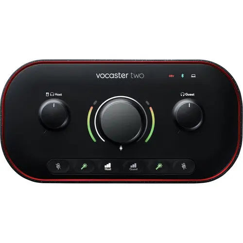Launch your two-person podcast in moments, and easily take the quality of your content to a higher level with the Focusrite Vocaster Two. This ultraportable podcast interface turns your computer or USB Type-C iPad into a potent and intuitive content-creation station, with gobs of automatic gain for two XLR mics of any kind, onboard sound enhancements a button-push away, and a smart selection of podcast-centric software. With the option to tap remote guests, infuse music and other audio clips, and even feed the mix to a camera, the Vocaster Two is a well-rounded podcasting solution that remains simple.