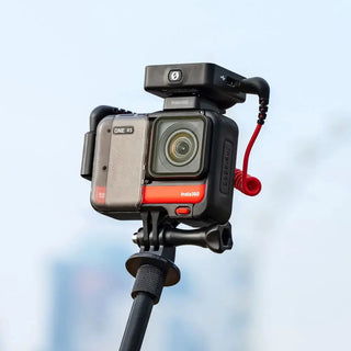 Designed specifically to attach to the top of your Insta360 ONE RS action camera, this Cold Shoe Mount makes integrating a microphone or light to your run-and-gun setup a breeze. Once attached to your ONE RS, the mount can support accessories up to 8.8 ounces like a shotgun microphone, fill light, or flash. A button on the side releases the mount with a single press. It's aluminum alloy and polycarbonate construction creates a lightweight device.