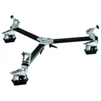 Manfrotto 114 is the Cine/Video Dolly. This dolly is designed for use with the Universal and Heavy-Duty tripods. Individually braked 5" wheels and a unique leg locking system make it extremely stable. Easy to assemble and disassemble for transporting.