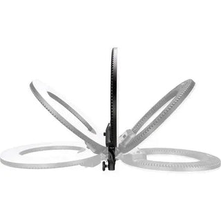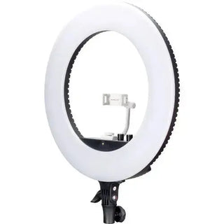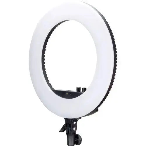 The 18" Halo Bi-Color Ring Light Kit from NanLite is part of a series of LED ring lights that are well suited for beauty lighting, vlogging, selfies, hairdressing, makeup application, portrait photography, and more. However you use it, the 18" ring light offers your images the signature attractive, soft, near-shadowless light quality with interesting ring-shaped catchlights which is the hallmark of this fixture's shape. The kit includes the ring light, a mirror, an AC adapter, and a smartphone bracket.