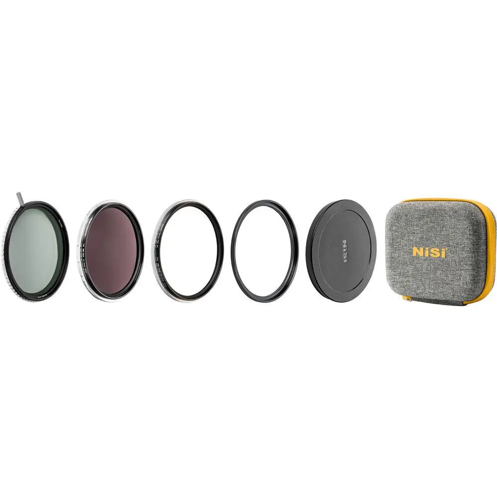This kit includes the NiSi True Color 1-5 stop VND Filter, ND16 (4 Stop), Black Mist 1/4, Adaptor ring, Lens cap and case.